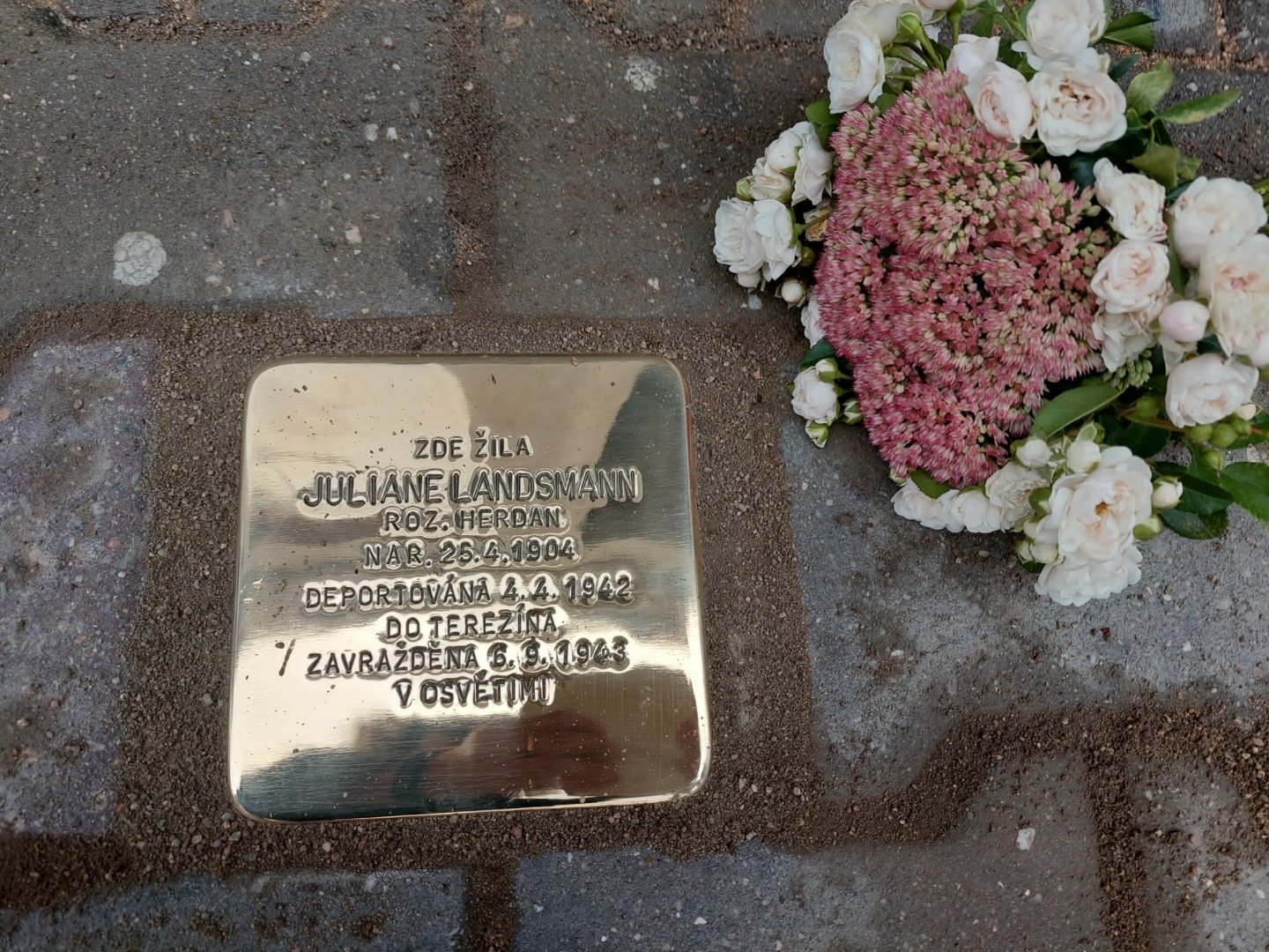 V neděli 4.9.2022 byl před naší budovou položen Kámen zmizelých za paní Juliane Landsman, rozenou Herdan, která se na Cejlu 12 narodila a do své svatby žila. Kámen přijeli položit a vzpomenout potomci až z Kanady a Austrálie.